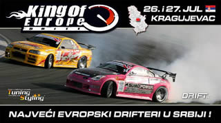 Medjunarodno takmičenje u driftu-bočnom klizanju automobila, pod nazivom "KING OF EUROPE" održaće se 26. i 27.jula ove godine u Kragujevcu. Centar šumadijskog regiona ugostiće najpoznatije evropske driftere medju kojima su i bivši "kralj" drifta, Paul Vlasblom (Holandija), zatim Kees Kok sa svojim sinom Marco Kok-om koji
