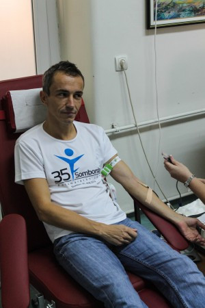 Predsednik somborskog kluba maratonaca,Damir Markovic na odelenju za transfuziju daje krv