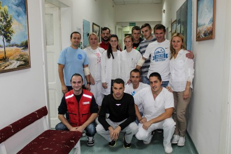 Ekipa medicinskog osoblja i članovi somborskog i kulskog kluba maratonaca posle izvedene akcije davanja krvi