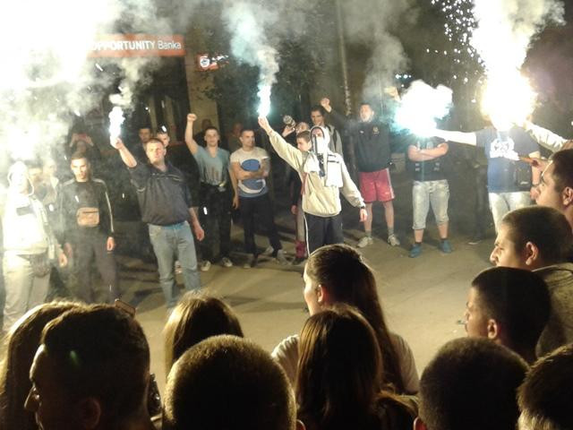Posle pobede u Jagodini, više stotina ljubitelja fudbala dočekalo je na Trgu navijače i fudbalere Radničkog. Sve je podsećalo na neka ranija vremene.