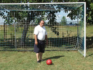 prema fudbalu, u svom prostranom i lepo uredjenom, travnatom dvorištu postavio je gol: pravih dimenzija i sa mrežom.