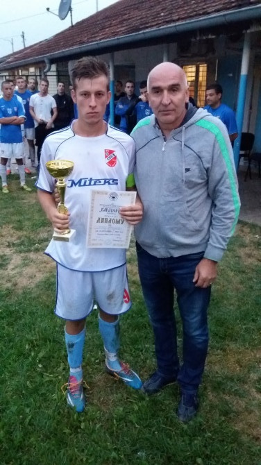 Pehar kapitenu Sloge Djordju Filipoviću uručio je Zoran Rakonjac predsednik FK Karadjordje