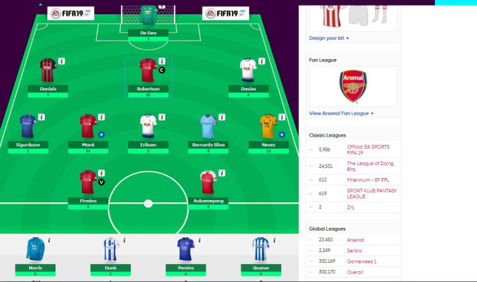 Što se napada tiče, za sada sam odlučio igrati bez Kejna. Zanmo za njegovo prokletsvo u avgustu ali i umor sa Mundijala je prisutan. Takođe, oni neće nešto previše natrpati ni Fulam a onda idu Junajtedu. Tako da je bolje sačekati sa njim. Od mojih napadača, Firmino je donio pet bodova jer je imao asistenciju, dok je Obamejang donio dva boda. Auba je igrao špica i to je pozicija gdje je bar protiv jačih ekipa mnogo gora opcija. Mnogo je opasniji po krilu i vidjećemo kakve planove ima Emeri sa njim. Svakako bi trebao biti dobra Fantazi opcija.