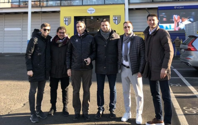 Nakon obavljenih razgovora i niza sastanaka oko poslovno tehničkih saradnji, delegacija našeg kluba je bila gost na Stadionu Enio Tardini i posmatrala derbi meč italijanskog prvenstva između Parme i Rome, odnosno plavo-žutih i rimske Vučice.