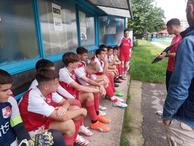 Utakmica je krenula napadima pionira Radničkog, i već u drugom minutu nakon kornera koji je izveo Stojković, Marko Zlatković je šutirao glavom ali preko gola. Već u sledećem napadu, opet je Stojković centrirao u šesnaesterac ali je ovog puta neprecizan bio prvi strelac ekipe Ilija Pavlović. U devetom minutu su gosti stigli do vođstva i to nakon odličnog prodora Đorđevića po levoj strani, za kojeg domaći igrači danas nisu imali rešenja kako da ga zaustave, i povratne lopte na liniju od šesnaest metara, koju je odlično primio Luka Jovanović, i precizno šutirao u gornji desni ugao golmana domaćih, i to je bilo 1:0 za pionire Radničkog. Već nakon dva minuta nova šansa za goste, sa desne strane je centaršut uputio Mateja Jović, pronašao Pavlovića u srcu šesnaesterca ali nije bilo promene rezultata. U trinaestom i četrnaestom minutu još dve šanse za goste, akteri u oba slučaja isti, najpre Luka Jovanović sjajno pronalazi Jovića po desnoj strani koji oba puta pronalazi u šesnaestercu Pavlovića ali u prvom slučaju golman brani šut a u drugom lopta odlazi preko gola domaćih. U osamnaestom minutu, prodor Vojina Stojanovića pa povratna lopta za Luku Propadala ali i ovaj put lopta odlazi preko gola odličnog golmana domaćih Davida Miljkovića. U dvadeset prvom minutu prva šansa za domaće igrače, Dimitrije Grozdanović je šutirao sa dvadesetak metara ali preko gola. Već u sledećem minutu gosti ponovo prete, opet preko Pavlovića koji ne koristi odločan centaršut Đorđevića i šalje loptu glavom pored gola. U dvadest osmom minutu, Đorđević je rešio da oproba svoj šut, iskosa sa leve strane je snažno šutirao ali je prečka ovog puta bila saveznik domaćeg golmana. U tridesetom minutu novi opasan napad pionira Radničkog, još jedan centaršut Jovića sa desne strane, opet nalazi Pavlovića u šesnaestercu ali opet nije bilo pogotka. I sa leve strane su napadali gosti preko Džunića i Đorđevića, slali upotrebljive lopte prema šesnaestercu ali se na odmor otišlo sa minimalnim vođstvom gostiju.
