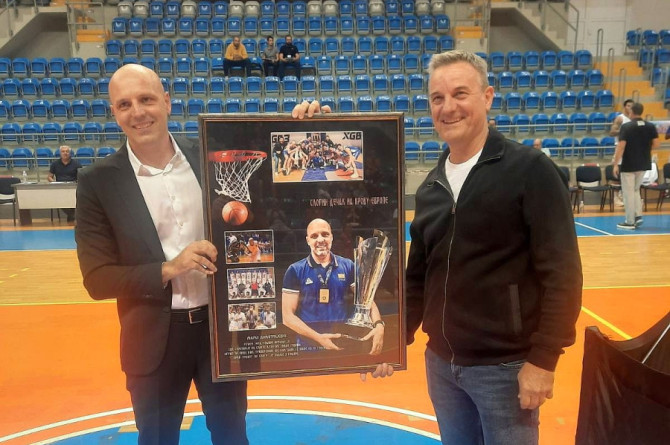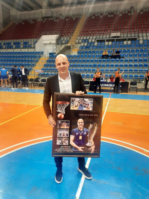 Nagrada u pravim rukama - Marko Dimitrijević trener košarkaša Sloge sa darom od matičnog kluba