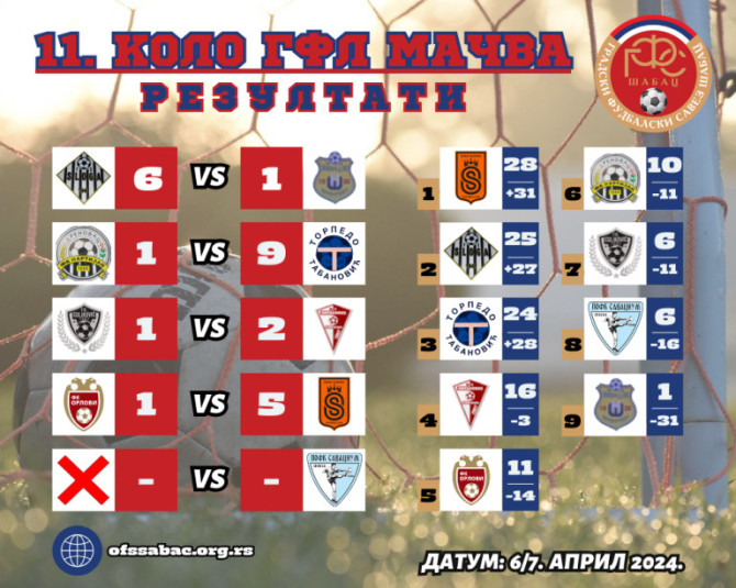 Veoma zanimljivo 11. kolo šabačkih gradskih fudbalskih liga je iza nas, koje se ističe izuzetnom efikasnošću obe grupe. Naime, i jedni i drugi su postigli natprosečan broj golova - 26 u Mačvi i 32 u Pocerini. Samo dve ekipe nisu učestvovale u tom bilansu, a sa druge strane, tu je devet i osam golova od strane Torpeda i Galeba, pa i šest u slučaju Sloge i Jedinstva.