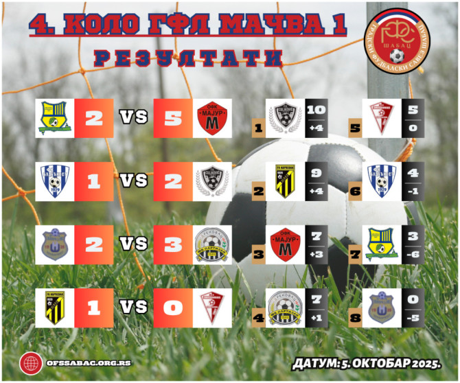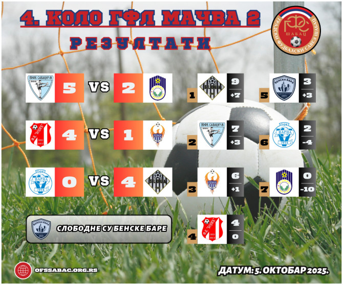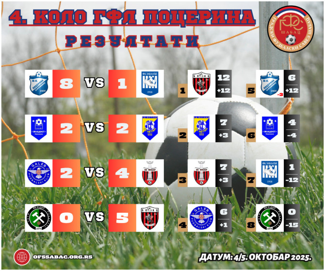 Ovo kolo šabačkih gradskih fudbalskih liga bilo je najefikasnije, prvi put je pređena cifra od 50 golova, odnosno postignuto ih je 56! Najveći doprinos dala je grupa Pocerina odakle je krenuo takmičarski vikend sa jedinom utakmicom u subotu u okviru kog je ekipa Pocerine sa 8:1 protiv Zablaća ostvarila najubedljiviju pobedu u ova četiri kola u sve tri grupe, uz het-trik Nemanje Đurića. Vodeći Borac BTG ostao je maksimalan, ujedno i jedini u svim ligama, nakon gostovanja u Donjem Crniljevu gde je slavio sa 0:5, a zadatak su završili već nakon prvog poluvremena kada je bilo 0:4. Mnogo preokreta viđeno je u ovom kolu, uključujući i na meču Galeb – Mišar u kojem su bila čak dva. Mišarci su dobro krenuli, da bi domaćin preokrenuo već do poluvremena. Međutim, drugo poluvreme u potpunosti pripada gostima koji preokreću rezultat u svoju korist, i to na 2:4 nakon čega je pitanje pobednika bilo rešeno. U Svileuvi jedina podela bodova u ovom kolu. Mladost je dva puta vodila, ali je Metlić u oba navrata uspeo da anulira prednost i tako se vrati kući sa jednim bodom koji ih održava na 2. mestu.