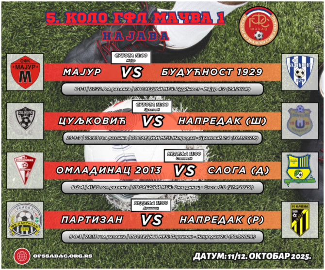 Sa petim kolom prelazimo preko polovine predviđenog jesenjeg rasporeda šabačkih gradskih fudbalskih liga. Samim tim ima još dosta da se igra i da se stanja na tabeli značajno promene, a sezona je tako počela da se pitanje dobrih i neizvesnih mečeva ne postavlja, počev od grupe Mačva 1, u kojoj nas očekuje nekoliko takvih.