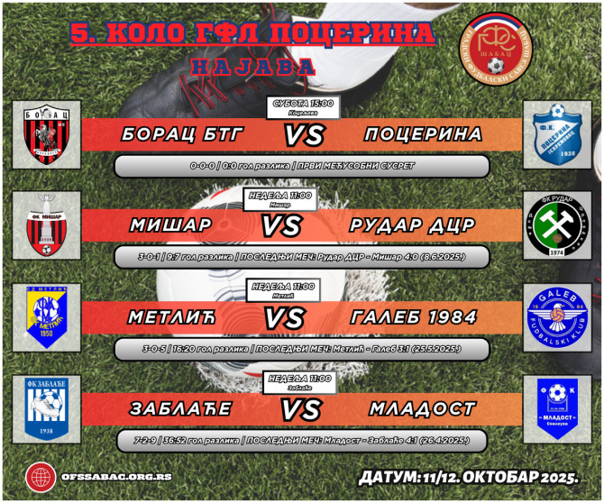 Još jedan primer prvog odmeravanja snaga imamo u derbiju kola grupe Pocerina, Borac BTG – Pocerina. Ekipe su u odličnim formama i poslednje pobede ostvarivale su velikim razlikama. Nakon već tri gostovanja u četiri kola, Metlić se vraća kući i važnoj utakmici sa Galebom, koga su pred svojim navijačima pre skoro pet meseci pobedili sa 3:1. Dva preokreta do pobeda napravili su Mišarci za napredak u plasmanu. Uspesi bi mogli da se nastave i ovog vikenda u kojem će ugostiti poznatog rivala iz prethodne sezone u kojoj su zajedno proveli u međuopštinskom društvu, poslednju ekipu Rudara DCR. Zablaće i Mladost su trenutno u donjem delu lige, mada je u nekim drugim sezonama bilo drugačije. Svileuvčani imaju mnogo više uspeha u skorašnjim međusobnim susretima, pobedivši u sva četiri u poslednje dve sezone, od kojih su oni ostvareni u Zablaću bili izuzetno ubedljivi (1:6 i 1:7).