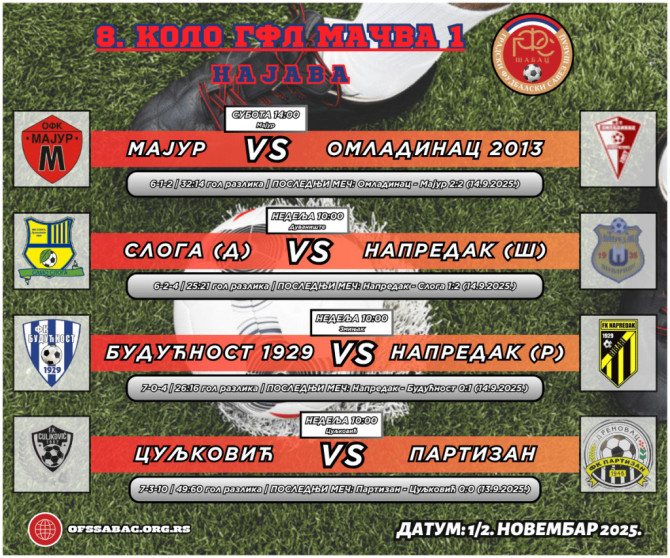 GFL Šabac 8. kolo: Neizvesnost vlada u svim grupama, ko će biti jesenji prvaci?