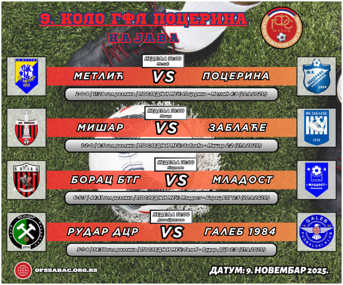 Ko će, neka četiri meseca pauze, provesti na prvom mestu i kao jesenji prvak odgonetno je samo u grupi Pocerina. Jedno kolo pre kraja to mesto obezbedio je Borac BTG, ali bodovi se moraju i dalje osvajati čemu će sigurno težiti u komšijskom derbiju sa ekipom iz Svileuve. Slavljeničko raspoloženje bilo bi kompletno ako bi ponovili rezultat iz 2. kola kada su slavili sa 2:5 kao gosti. Mišarci su najbliži tome da ostanu najbliži pratilac lideru, naročito kao favorit u utakmici protiv Zablaća kojem će biti domaćin, mada je prvi meč završen nerešeno (2:2). Galeb će nova tri boda tražiti u susretu sa Rudarom, sa kojim imaju pozitivan skor, kako ukupan tako i u Donjem Crniljevu (3-0-4). Meč između Metlića i Pocerine je možda i najzanimljiviji jer je u pitanju borba za plej-of. Domaći imaju četiri boda manje, tako da im je pobeda neophodna kako bi na proleće bili u prilici da prestignu neku od ekipa koja je trenutno ispred njih.