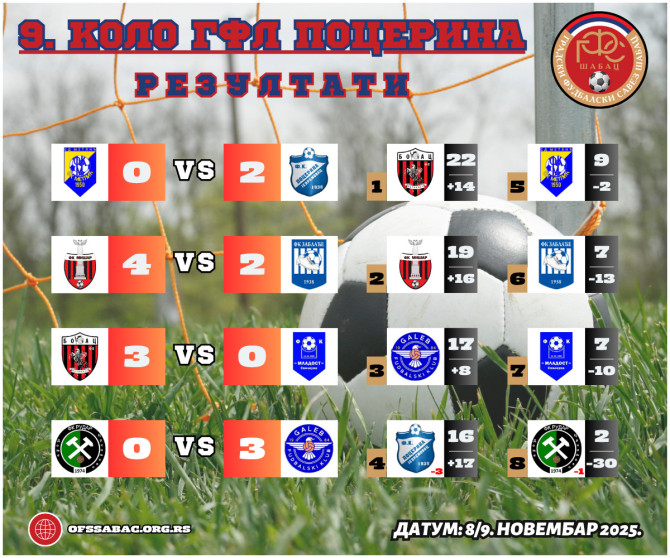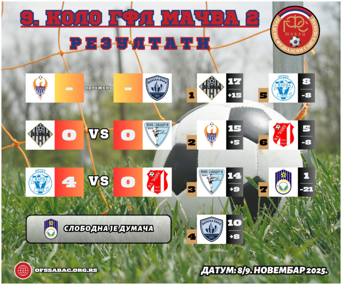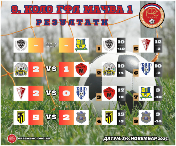 Što se mečeva iz redovnog 9. kola tiče, takođe iz grupe Mačva 2, u derbiju između Sloge i Savaciuma nije bilo golova, dok je Varna sa 4:0 nadigrala Bojić. Ovo je bio drugi uzastopni remi za Slogu čime su ugrozili svoju lidersku poziciju i samim tim jesenju titulu, jer imaju dva boda više od Feniksa i tri od Savaciuma, od kojeg imaju i lošiji međusobni skor. Međutim, ovo pitanje biće rešeno tek po odigravanju preostalih utakmica. Uspeh Varne trasirao je sa dva gola u prvom poluvremenu Nemanja Mladenović (1' i 27'), dok su preostala dva viđena u drugom delu.