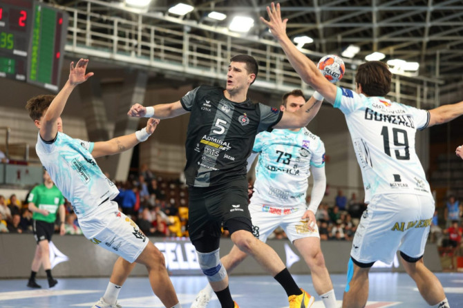 Crno-beli su dobro otvorili meč i poveli 2:4 uz dve odbrane Trnavca. Međutim, i Barkordari, čuvar mreže Ademar Leona, je bio odličan u prvom poluvremenu. Domaćin je prvi put poveo u 14. minutu (6:5), kada je započeo seriju 4:0 i kaznio krizu u realizaciji i tehničke greške našeg tima – 9:5. Nije funkcionisao napad izabranika Đorđa Ćirkovića, pa se na novi pogodak čekalo skoro deset minuta. Crnoglavac je iz sedmerca prekinuo niz Španaca, a crno-beli su se trgli i do odlaska na pauzu poravnali rezultat – 11:11. Desni bek i najbolji strelac Partizan AdmiralBet-a je bio najefikasniji u prvoj deonici sa šest golova (četiri iz sedmeraca), dok je Trnavac upisao sedam odbrana.