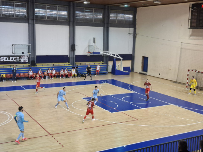 Oba tima su ušla isuviše oprezno u meč, jer je ulog veliki, opstanak. Bilo je potrebno čitavih 11 minuta da se mreža prvi put zatrese. Strelac vodećeg gola za beogradske akademce bio je Arsić posle snažnog šuta sa 13-14 metara. Gosti minut pre odlaska na odmor iz pauer-plej igre stižu do izjednačenja. Strelac gola je Đorović, prethodno se lopta odbila od stative nakon udarca Stojčevskog.
