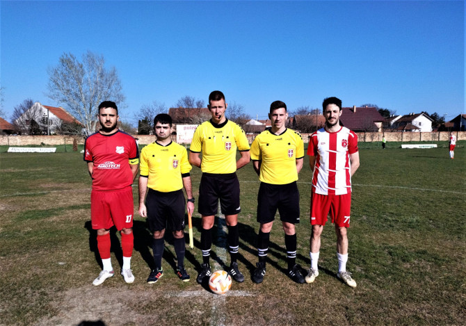 Kapiteni i sudije pre početka utakmice u Novom Bečeju (foto: Stevan Davidović)