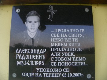 Tradicionalni, Memorijalni trijagonalni turnir „Aleksandar Aca Radošević“, organizuje se u Kupinovu, 10. avgusta. Ovogodišnji turnir je šesti po redu, a organizuje se u znak sećanja na Aleksandra Radoševića (22), koji je preminuo 3. oktobra 2007. godine na samom igralištu, tokom trening utakmice. - Na ovogodišnjem turniru pored Kupinova, učestvovaće Radnički sa Novog Beograda i Jedinstvo iz Štitara - kaže Petar radošević, otac pokojnog Aleksandra - Turnir otvaraju u 18. časova Kupinovo – Radnički, a potom igraju Radnički – Jedinstvo, na kraju Jedinstvo – Kupinovo. Pre uvodne utakmice, prigodnim rečima, prisutnima će se obratiti Bata Janković, u ime Zemuna, kluba za koji je Aleksandar igrao. Potom će porodica, prijatelji i predstavnici klubova položiti cveće na grob. Organizatori Memorijalnog turnira su Fudbalski klub Kupinovo i porodica Radošević. Na snimku: Spomen ploča na stadionu Kupinova.