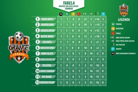 Najnoviji turnir u gradu zelenila je „ORANGE LEAGUE“ u balonu „Ivanović impexa“gde je već odigrano jedno kolo od šest utakmica,a Liga broji 12 ekipa iz Sombora i okolnih mesta i u naredna dva meseca treba da se odigra još 60 utakmica. Prvo kolo je bilo efikasno i strelci su se proslavili, a najviše golova je bilo na utakmici „BEER BOYS“ i „DRŽAVNI POSAO“ (21:5).