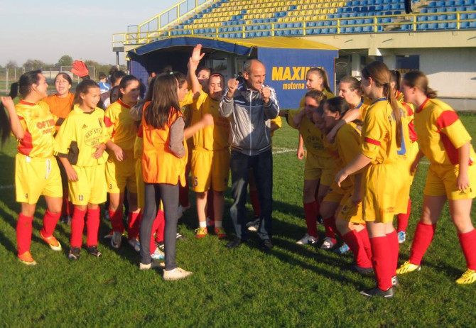 Nedeljko Kovačević sa fudbalerkama Modriče / foto: Slađan Jeremić