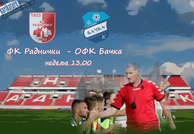 Utakmica između niškog Radničkog i OFK Bačke iz Bačke Palanke se igra na Čairu u nedelju od 13 sati, a glavni delilac pravde će biti Dragan Čolović iz Raške. Pomagaće mu Vladimir Jovanović iz Čačka i Srđan Minić iz Rače. Četvrti sudija će biti Novica Anđeloski iz Kačareva.