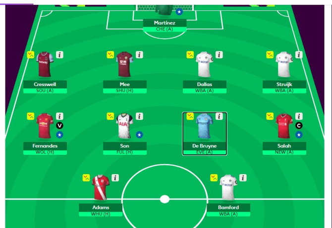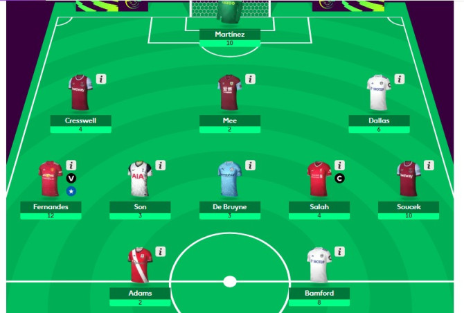 Ja sam imao odlično kolo. Bio sam među 300 hiljada u kolu i sa 64 boda napredovao sam 400 hiljada mjesta. Čak sam promašio kapitena a opet sam napredovao. Očekivao sam više od Salaha ali eto. Izvukli su me Martinez sa CS i dva boda bonusa za ukupno deset bodova, Souček koji je dao gol i imao tri bonusa za deset bodova a opet mi je Dalas donio bodove, ovaj put CS.  Naravno, imao sam i Brunu i Bamforda ali ne vjerujem baš da sam sa njima neku razliku napravio.