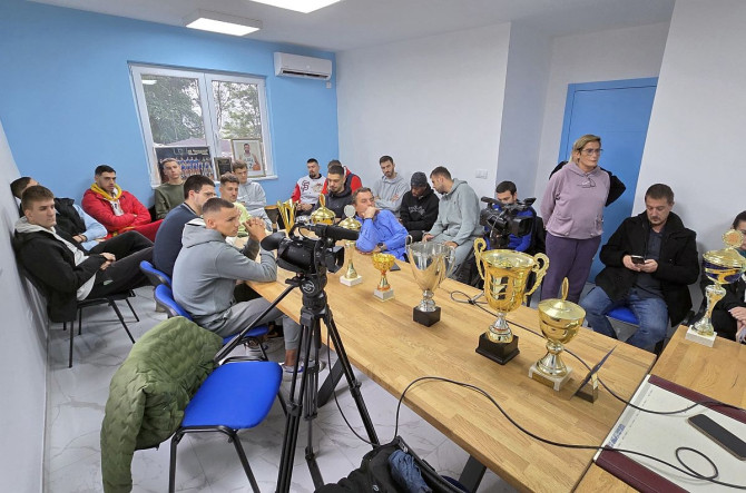 Slogini košarkaši i lokalni mediji u novim prostorijama kluba