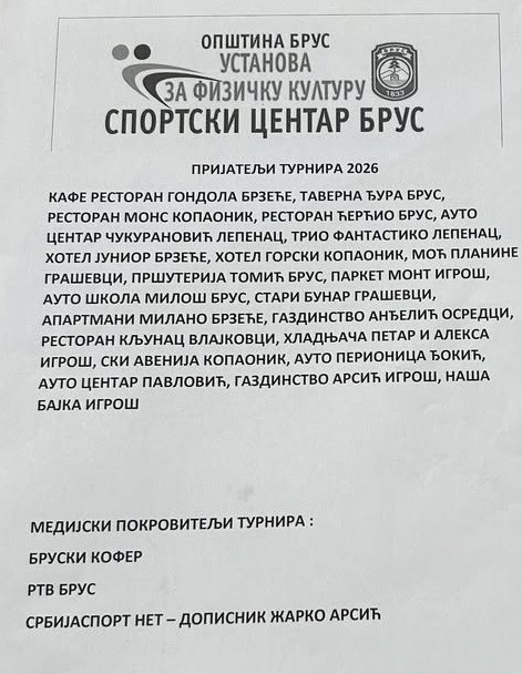 Večeras veliko finale tradicionalnog Svetosavskog turnira Brus 2026