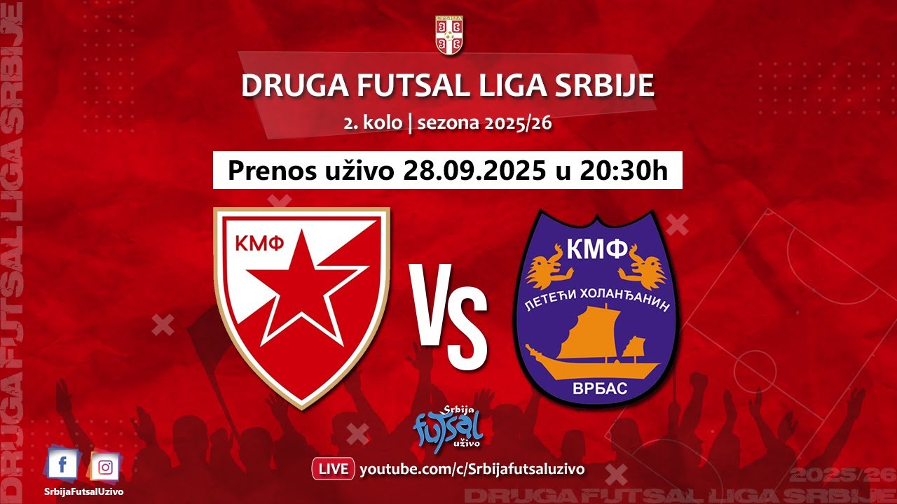 KMF Crvena Zvezda - KMF Leteći Holanđanin | Druga futsal liga Srbije